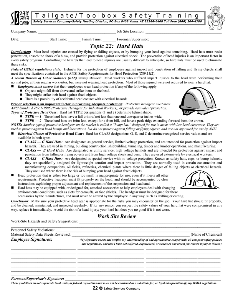 Osha Toolbox Talks Cost-free Downloads.